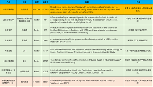 在头颈肿瘤、乳腺癌、肺癌、前列腺癌等多个疾病领域,卡瑞利珠单抗、阿得贝利单抗、吡咯替尼、氟唑帕利、法米替尼、醋酸阿比特龙片(II)等抗肿瘤新药相关研究一共入选了1项简短口头报告、4项壁报展示和1项电子壁报,彰显了AG体育医药强劲的研发实力。